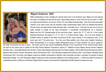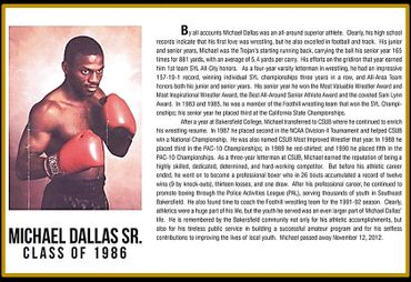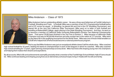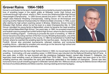 Kern County Wrestling Coach of the Year, All American wrestler, inducted into the National Wrestling Hall of Fame, and currently Principal and Director at Kern High School District.