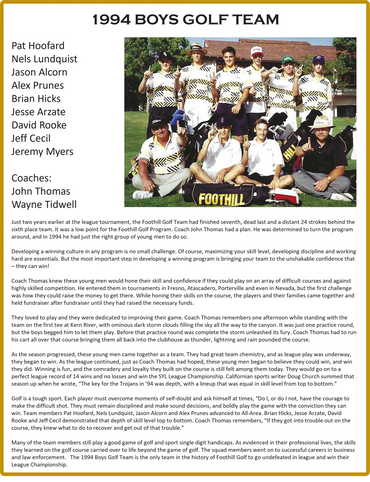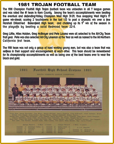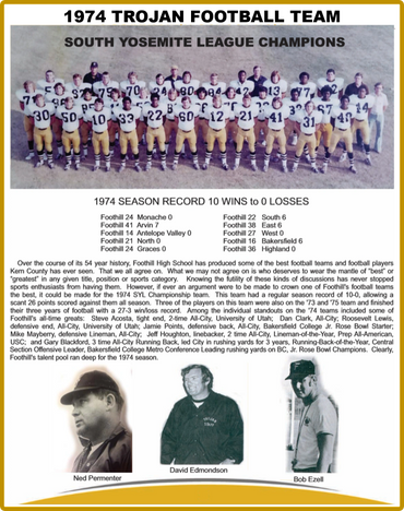 South Yosemite League Champions, undefeated in league, with many outstanding players including Back of the Year, top receiver, top rushers and many All-City players.