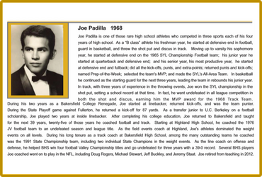 Record setting running back, defensive back and sprinter, coach and mentor to youth sports programs.