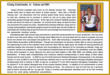 Valley Champion hurdler & track athlete, US Army Lieutenant Colonel, Purple Heart recipient, author and commentator on
