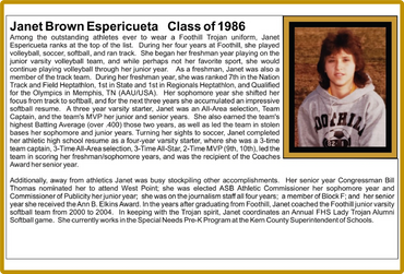 Renowned Women’s Softball player and pitching coach not only at Foothill but at the university level, having pitched a perfect game and set many university rankings.